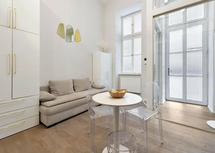 Апартаменти розміщені в центрі Праги, в межах 25-хвилинної прогулянки від парку Петрин. Найближча автобусна зупинка Museum знаходиться за 100 метрів, а Національний театр - лише за 1.5 км. Національний музей знаходиться зовсім неподалік від апартаментів.